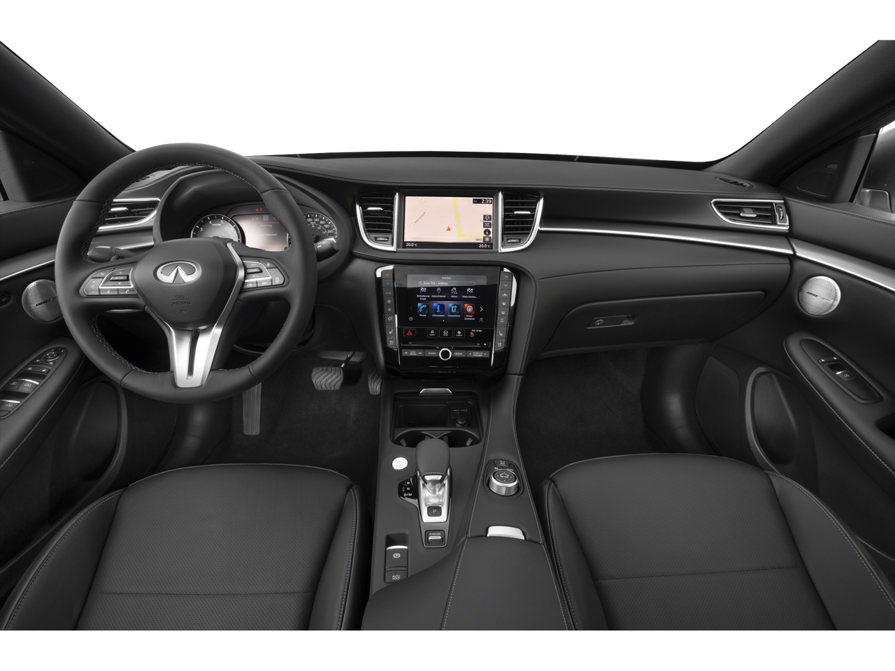 - Radio: Bose Performance Series Premium Audio -inc: 16 speakers, metallic speaker grilles on tweeters, INFINITI InTouch dual display system w/upper 8" and lower 7" HD touch screens, wireless Apple CarPlay and Android Auto, HD Radio technology, SiriusXM radio w/advanced audio features and 90-day complimentary trial, INFINITI voice recognition, INFINITI InTouch services, Siri eyes free, WiFi hotspot, navigation w/3D building graphics including 5-year complimentary access to premium traffic and MapCare, SiriusXM Traffic w/3 month complimentary trial access to real-time traffic information and SiriusXM Travel Link w/3 month complimentary trial access to weather, fuel prices, stock prices, sport scores, movie listings and parking